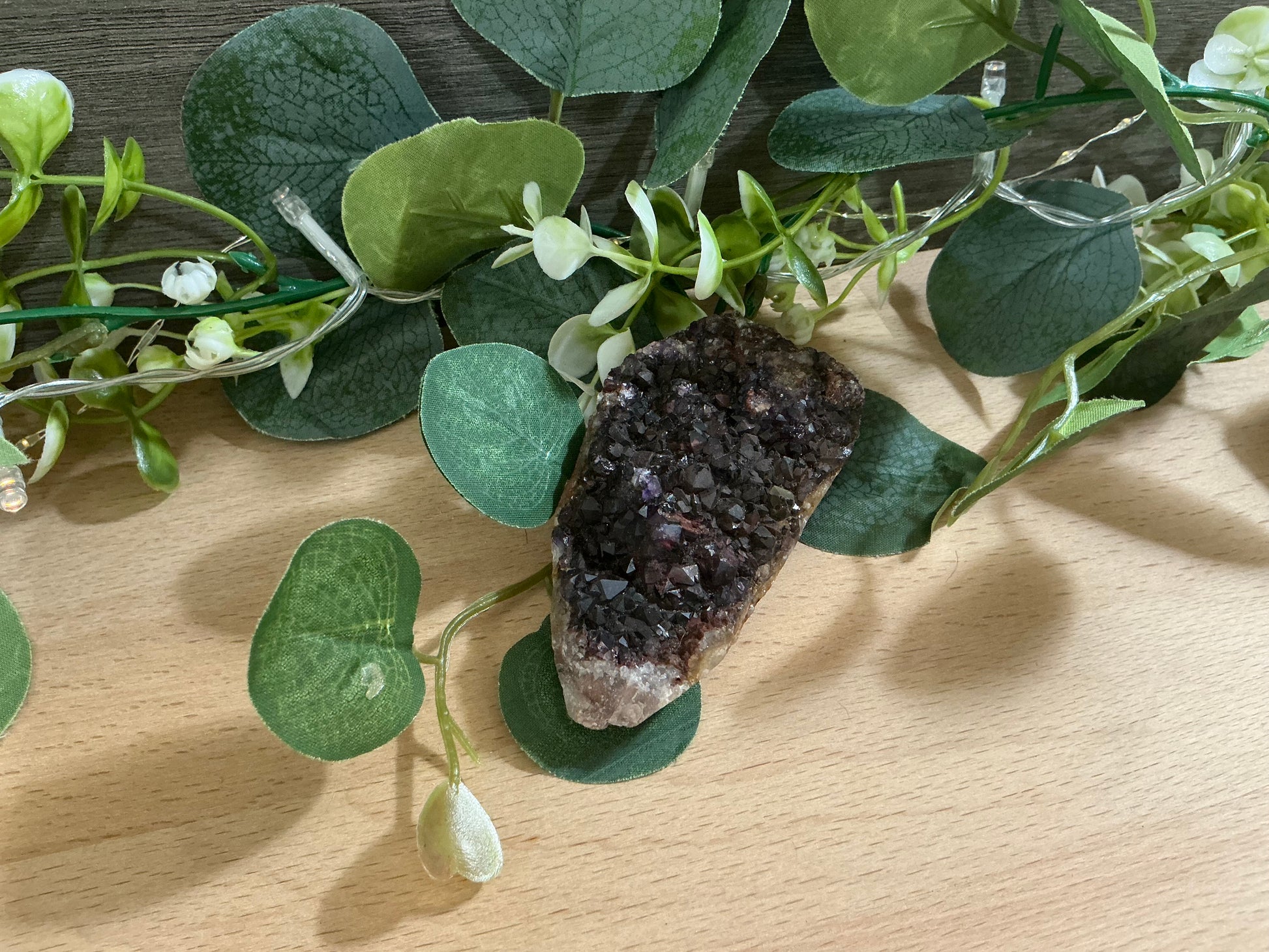 Discover the captivating beauty of Alien Amethyst, a unique 144g specimen blending vibrant purple amethyst with striking red hematite inclusions. This rare combination enhances its natural energy, offering both visual intrigue and metaphysical benefits. Perfect for collectors or those seeking a powerful crystal to elevate their space, Alien Amethyst draws you into its cosmic allure while promoting balance and protection. Embrace a truly distinctive crystal experience with this extraordinary gem.