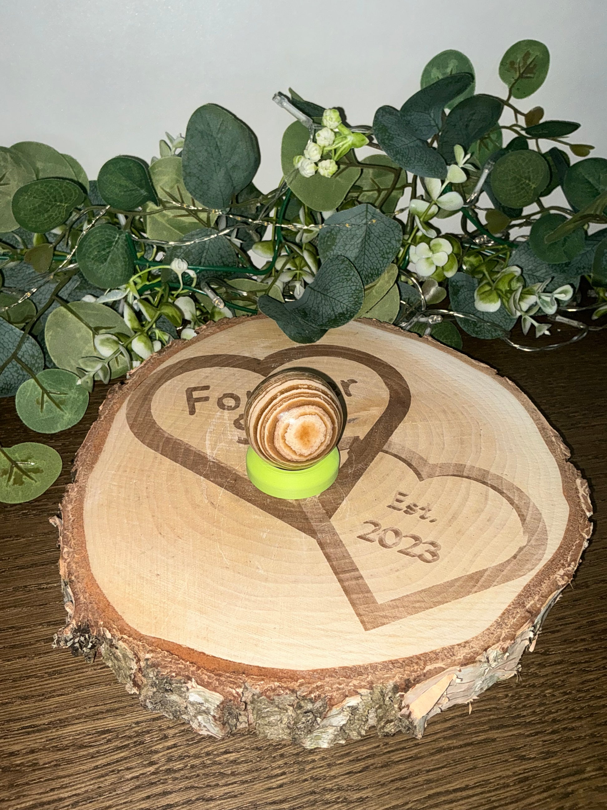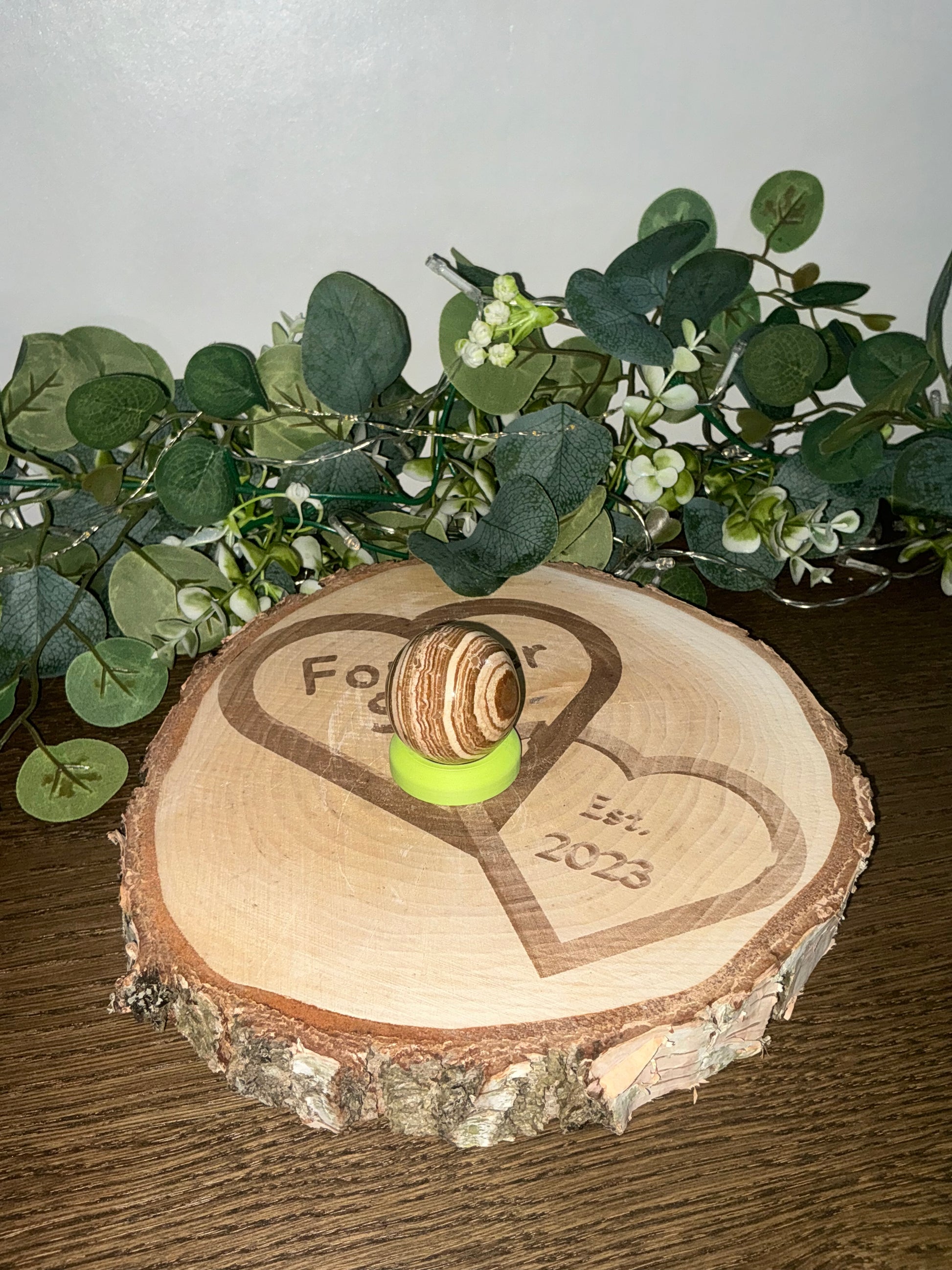 This 85g Aragonite sphere showcases the mineral's distinctive earthy tones and natural striations, making it a compelling addition to any mineral collection or decorative display. Known for its grounding properties, Aragonite encourages emotional balance and mental clarity, while its polished surface offers a tactile experience ideal for meditation and focus. Expertly crafted, this sphere combines aesthetic appeal with metaphysical benefits, providing both beauty and purpose in a compact form.