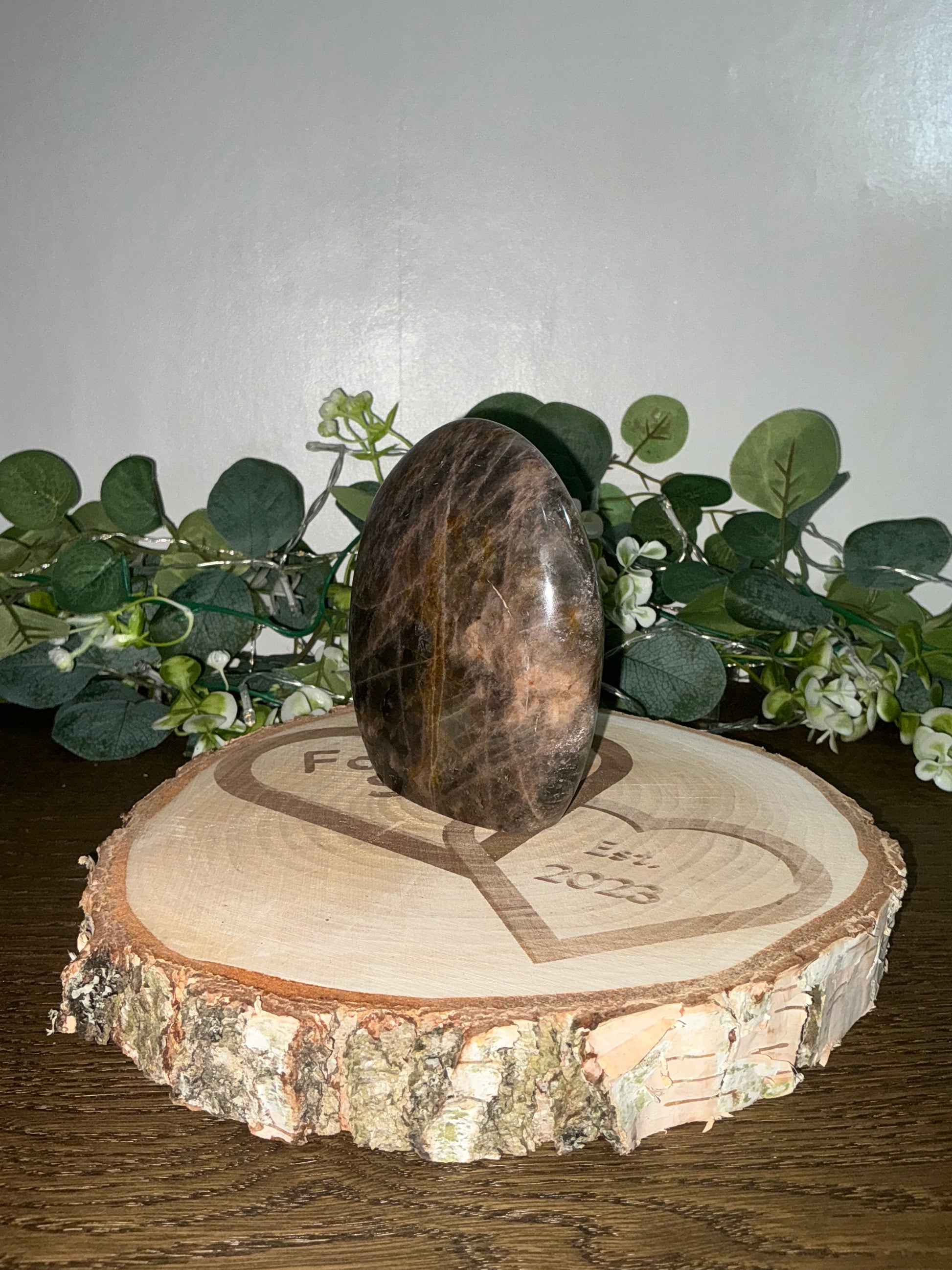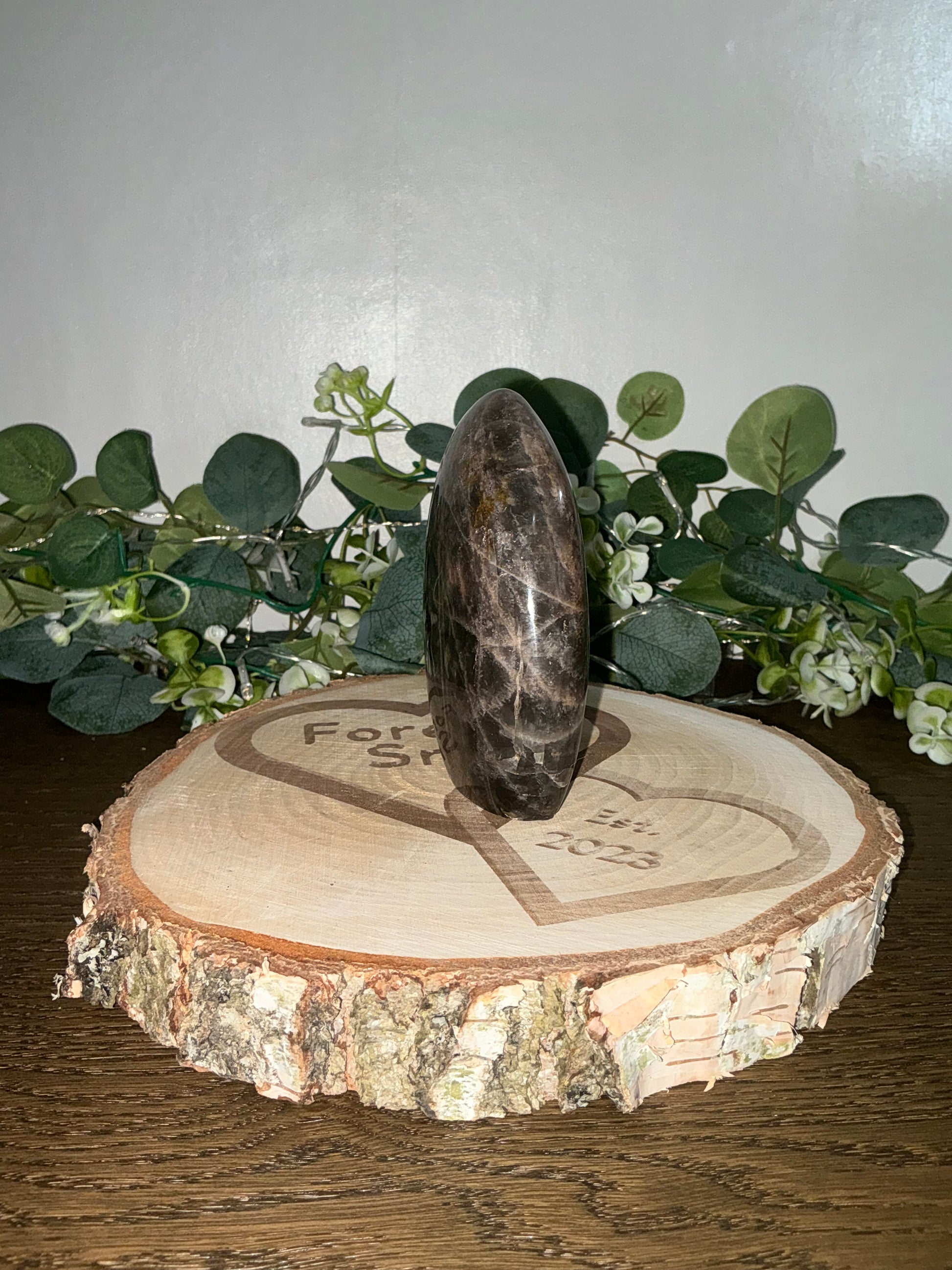 Discover the captivating allure of this Black Moonstone FreeForm, weighing 611g. Its unique shape and deep, shimmering hues bring a sense of mystery and elegance to any space. Ideal for collectors and enthusiasts, this stone not only enhances your décor but also invites calm and balance into your environment. Elevate your collection with this striking natural treasure.