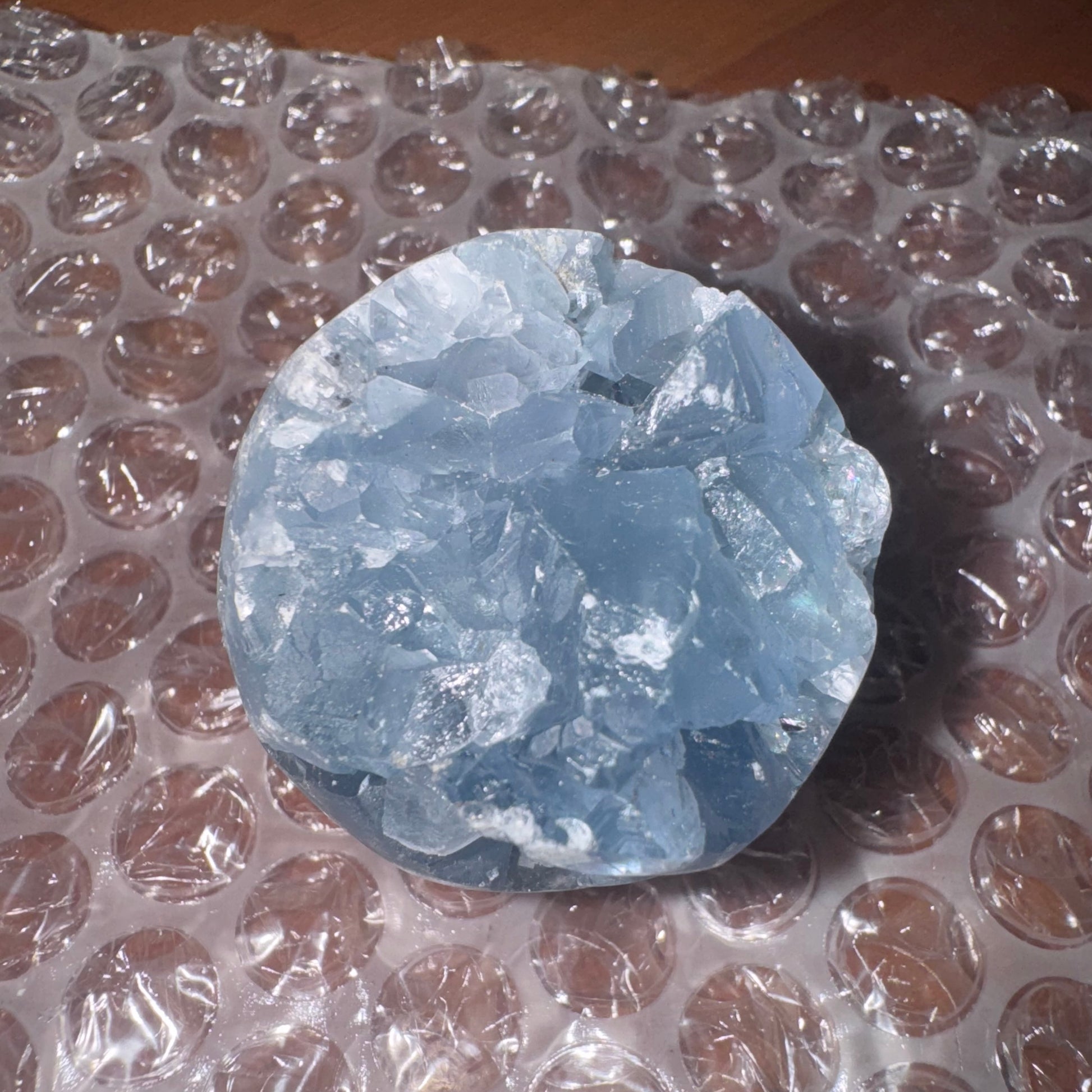 Discover the magic of this charming Blue Celestite Small Sphere! Its calming blue hues bring a touch of serenity to any space, while its smooth, polished surface invites endless twirling fun. Perfect for crystal lovers who want a splash of sky-inspired beauty in their collection or as a delightful desk companion to brighten your day. Let this playful little sphere spark joy and peaceful vibes wherever it rolls!
