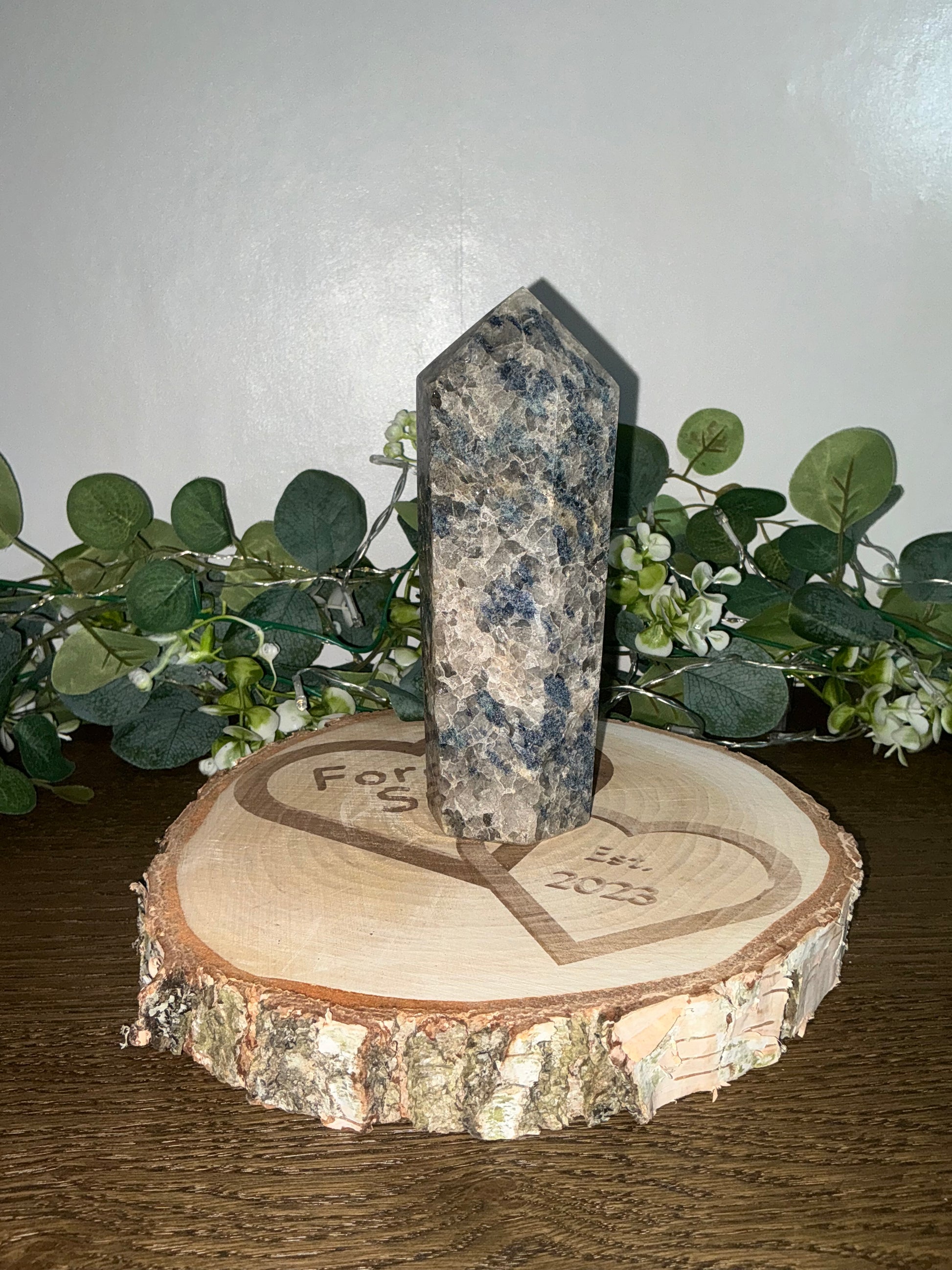 This 708g Blue Spinel Tower showcases the stone’s remarkable clarity and vibrant blue hues, ideal for collectors and crystal enthusiasts. Its tower shape enhances energy flow, making it a refined choice for meditation or space cleansing. With its substantial weight and exquisite craftsmanship, it serves as both a striking display piece and a powerful tool for enhancing mental clarity and emotional balance.
