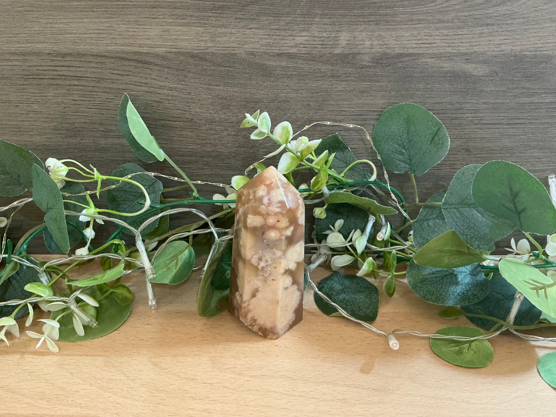 Discover the charming Flower Agate Tower, a 327g slice of nature’s art! Its delicate patterns look like tiny blooms caught in stone, bringing a playful splash of beauty to any space. Perfect for sparking joy and curiosity, this unique piece adds a touch of magic to your collection or decor.