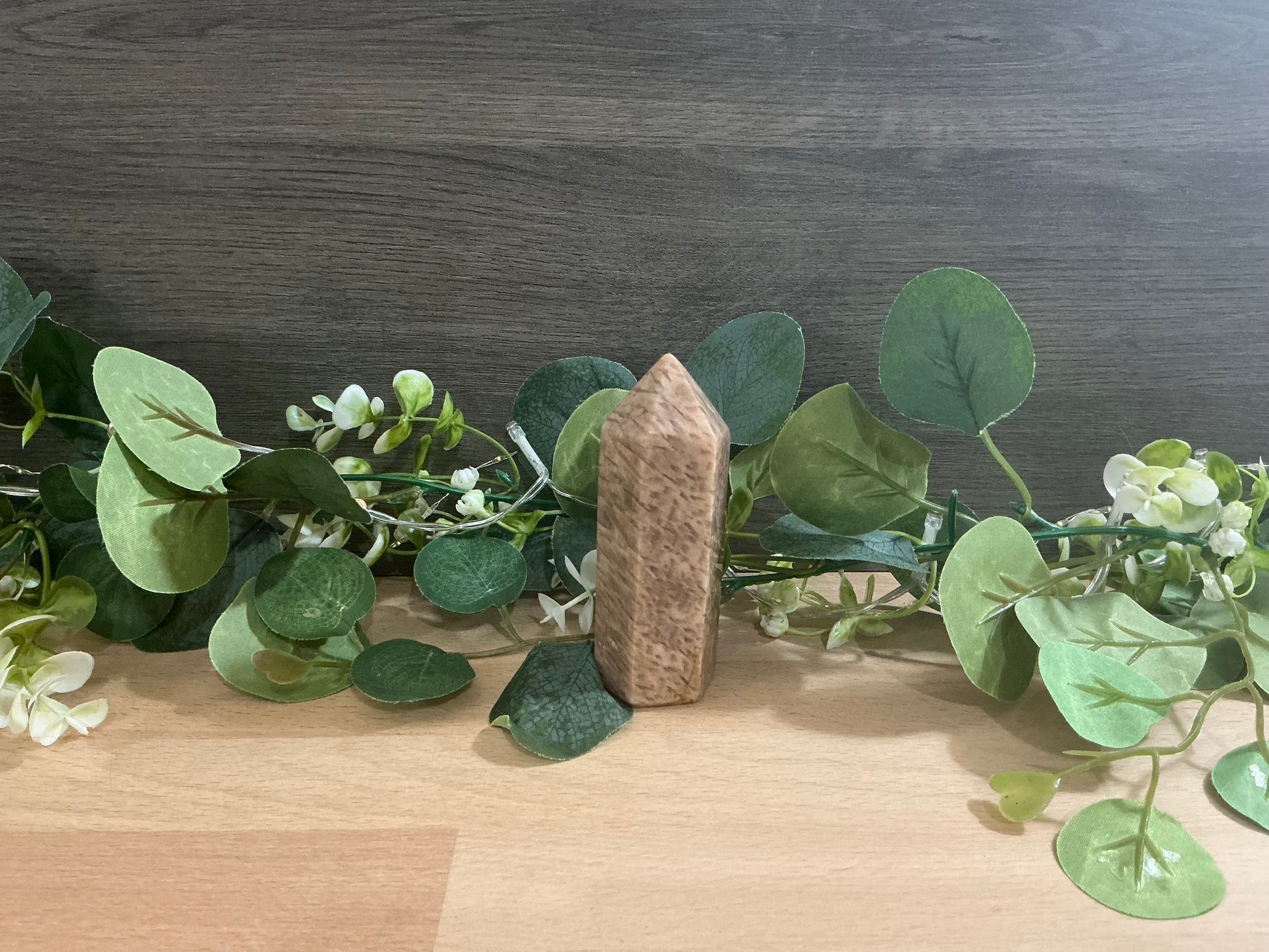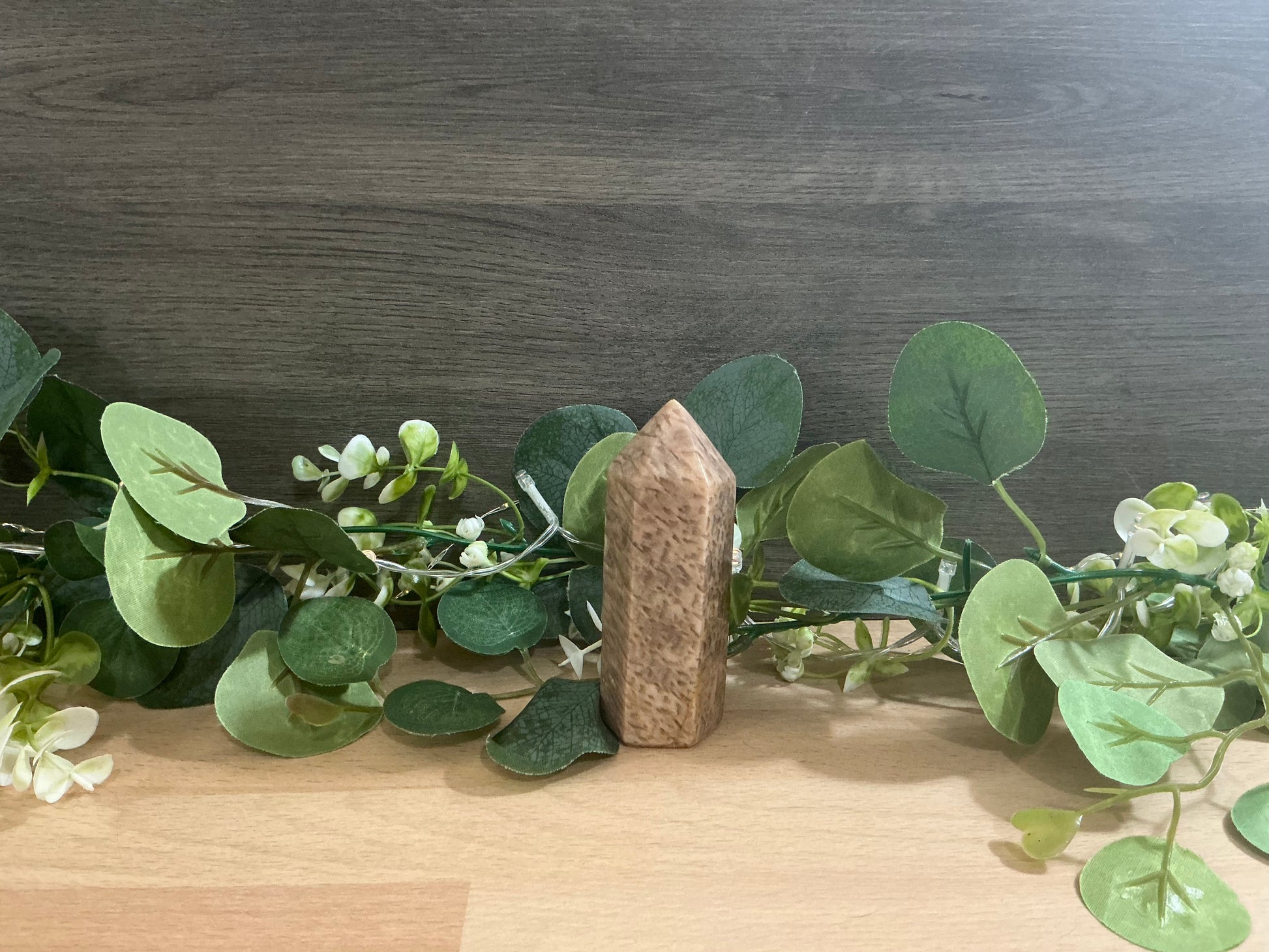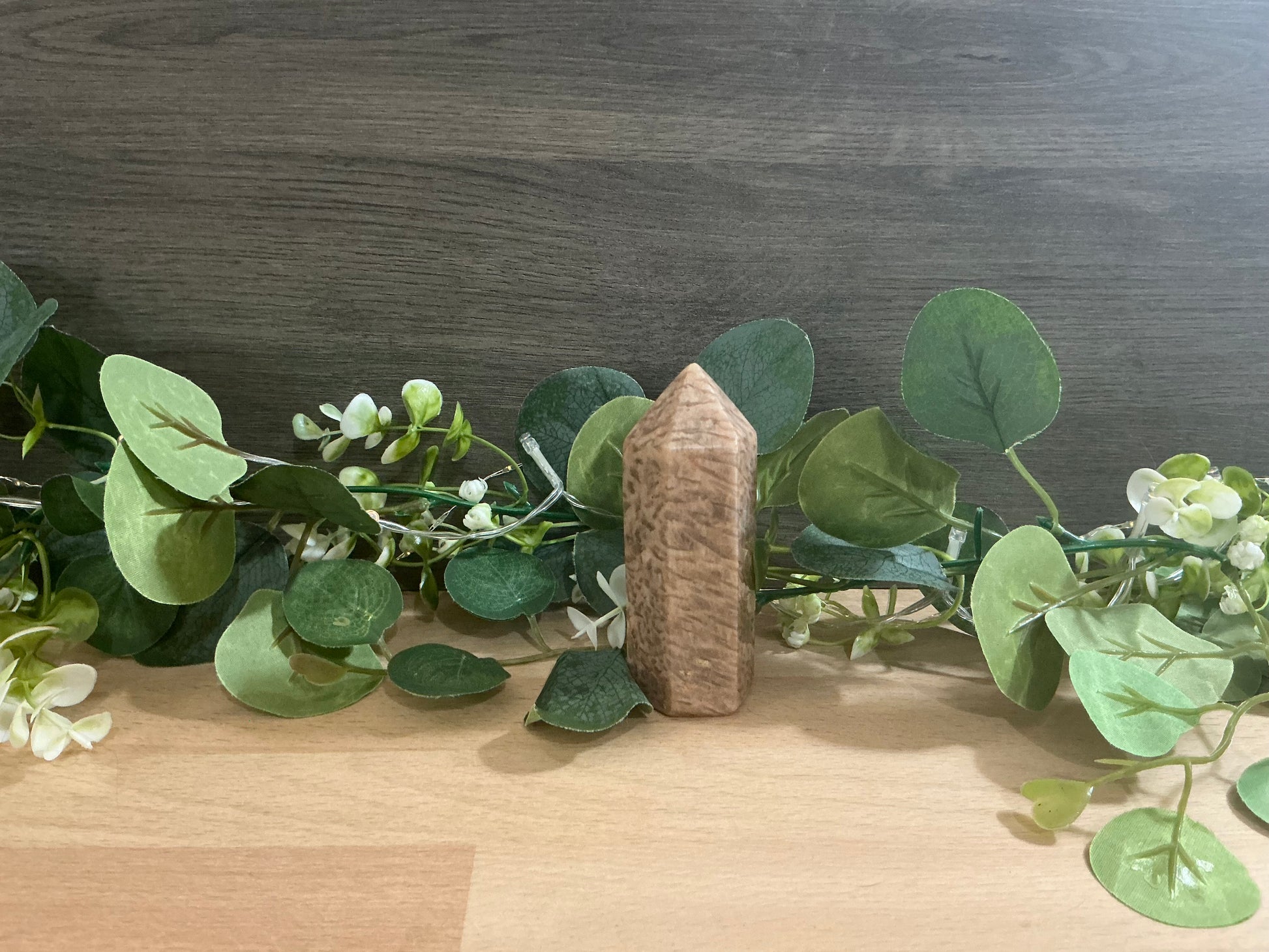 Elevate your space with the Graphic Honey Moonstone Tower, weighing 224g. Its captivating hues and natural glow bring a warm, calming energy that enhances any room. Perfect for meditation or as a striking decorative piece, this tower offers both beauty and a sense of tranquility, making it a must-have for those seeking harmony and style.