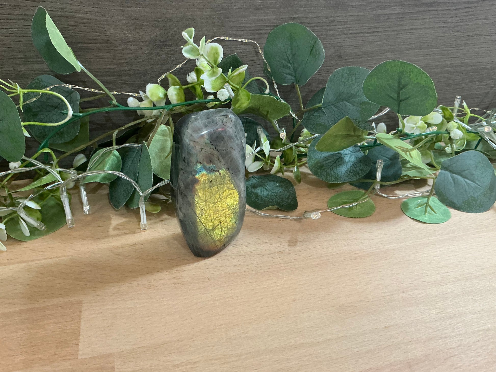 Discover the magic of this stunning 303g Labradorite Free Form, a dazzling stone that catches the light with every angle. Perfect for adding a spark of mystical charm to your space, its unique shape and shimmering colors invite curiosity and wonder. Let this playful gem brighten your day and spark your imagination!