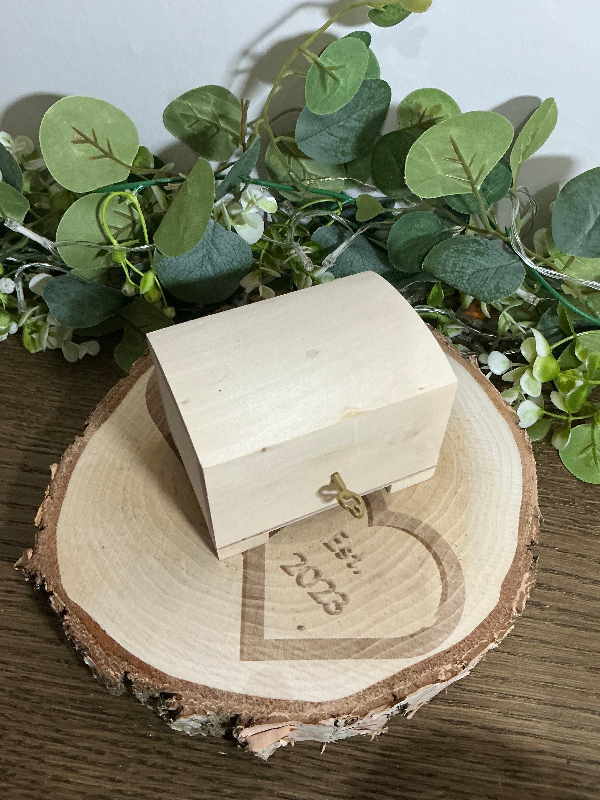 Secure your treasured collections with this charming lockable chest, designed to protect small keepsakes, tumble stones, and precious mementos. Customise to how you wish with text or image.