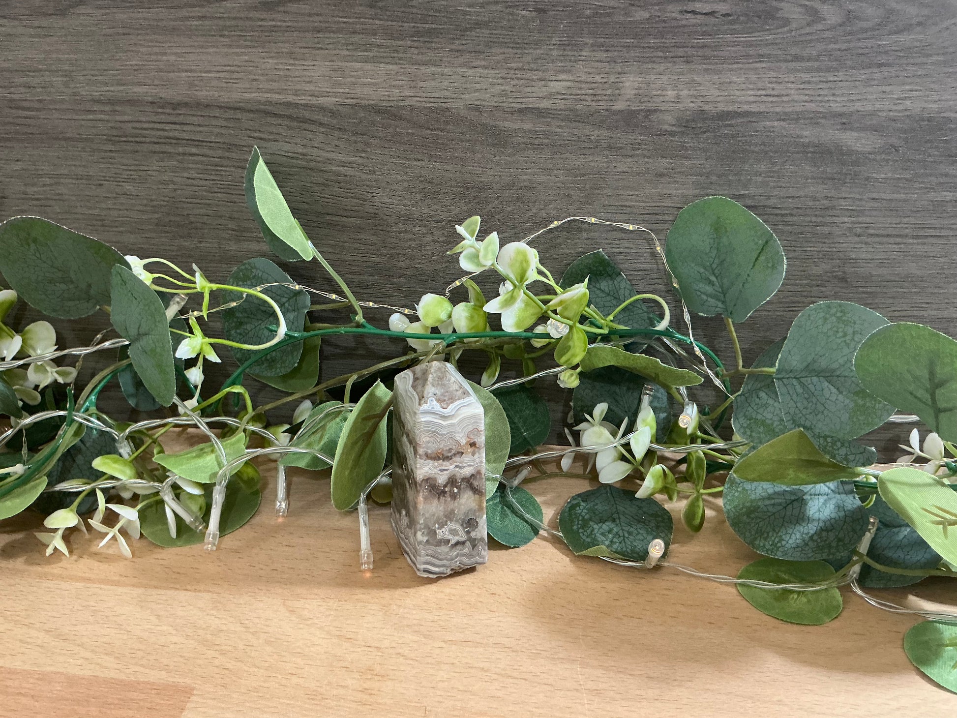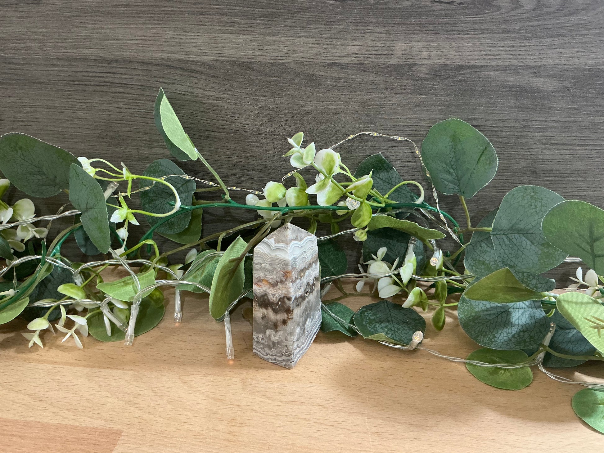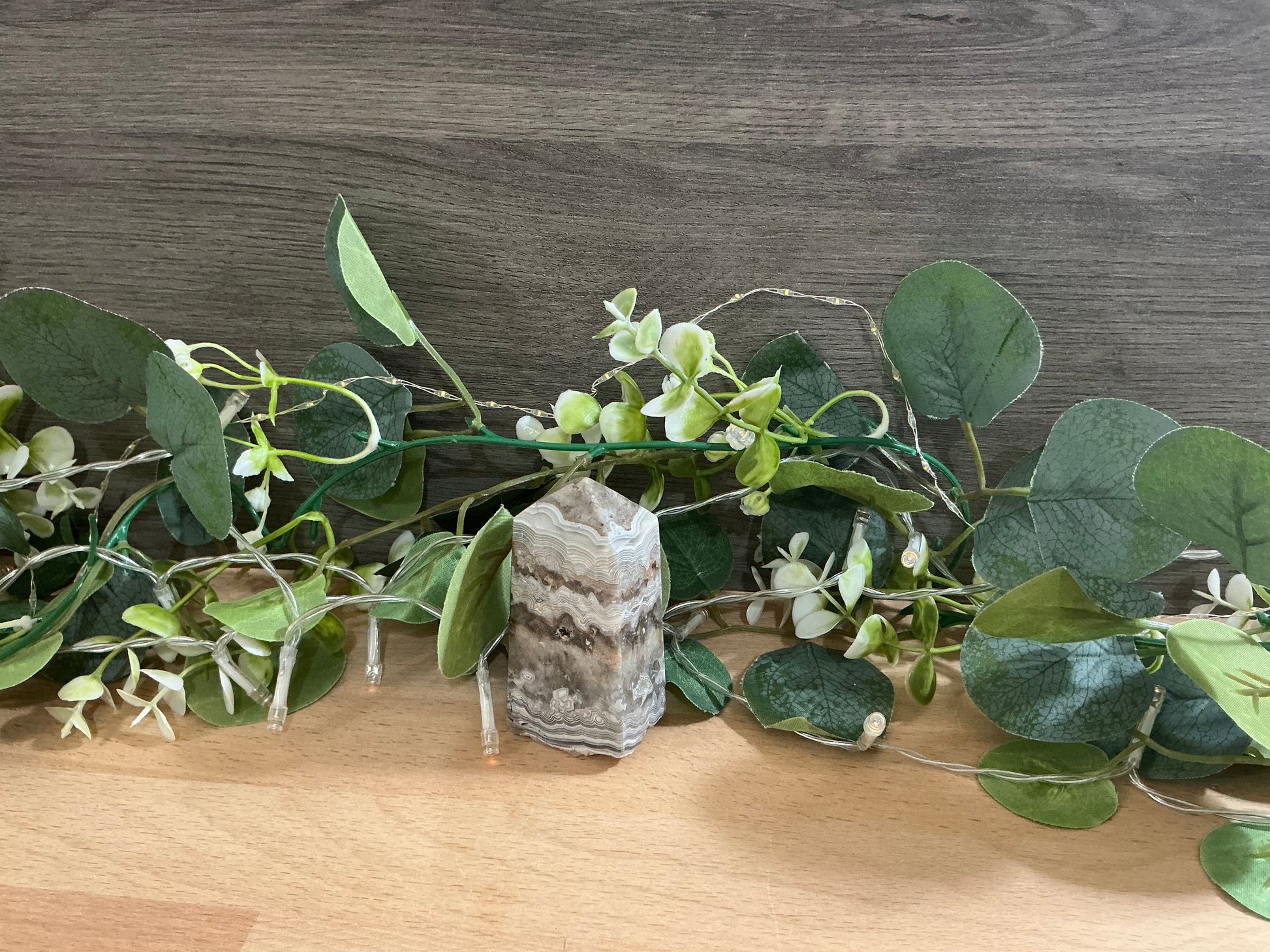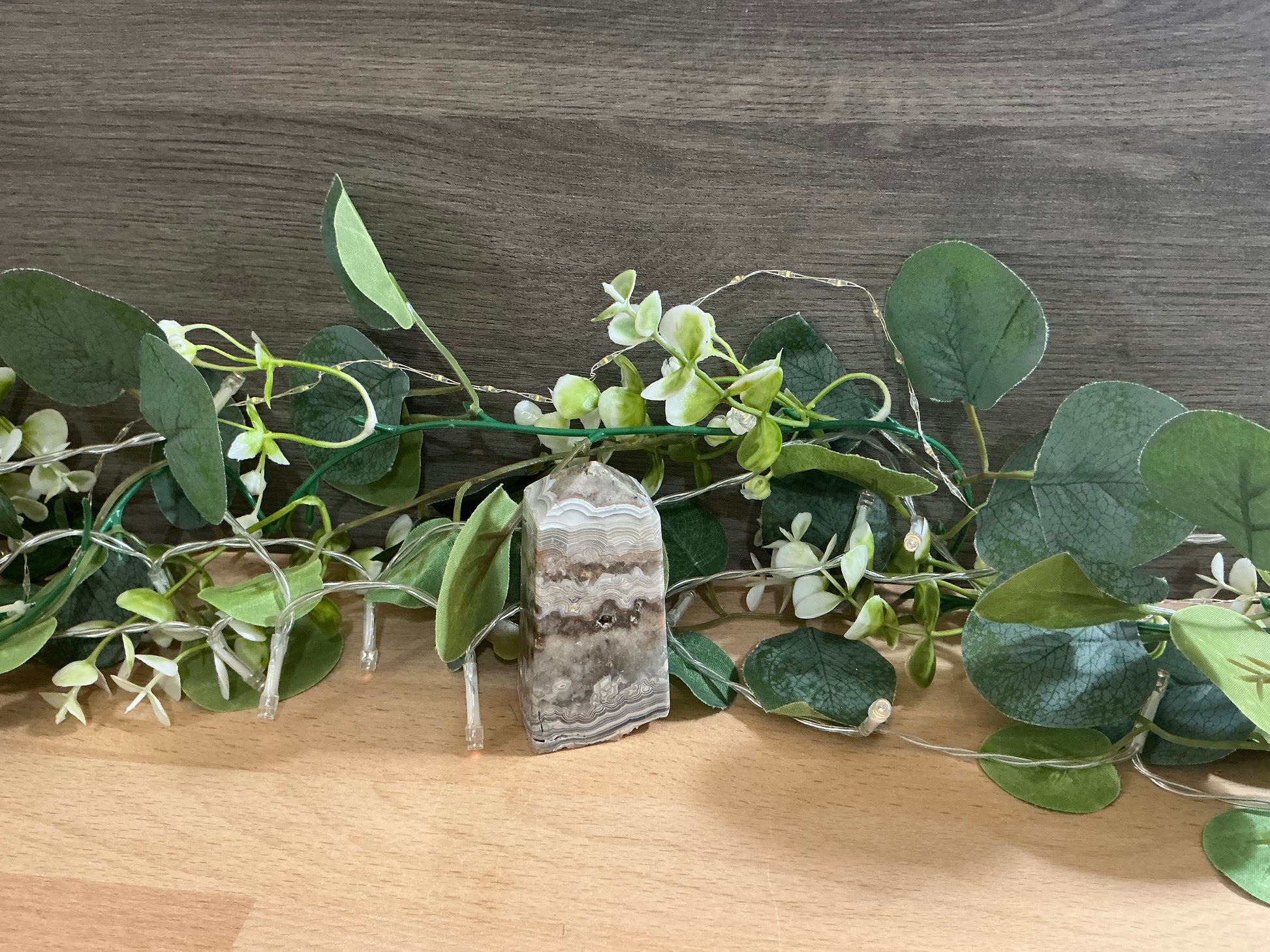 Elevate your space with this Mexican Agate Tower, weighing a charming 174g. Its vibrant bands dance in earthy tones, bringing a playful pop of natural beauty to any room. Perfect for adding a touch of wonder and grounding energy to your collection or décor.