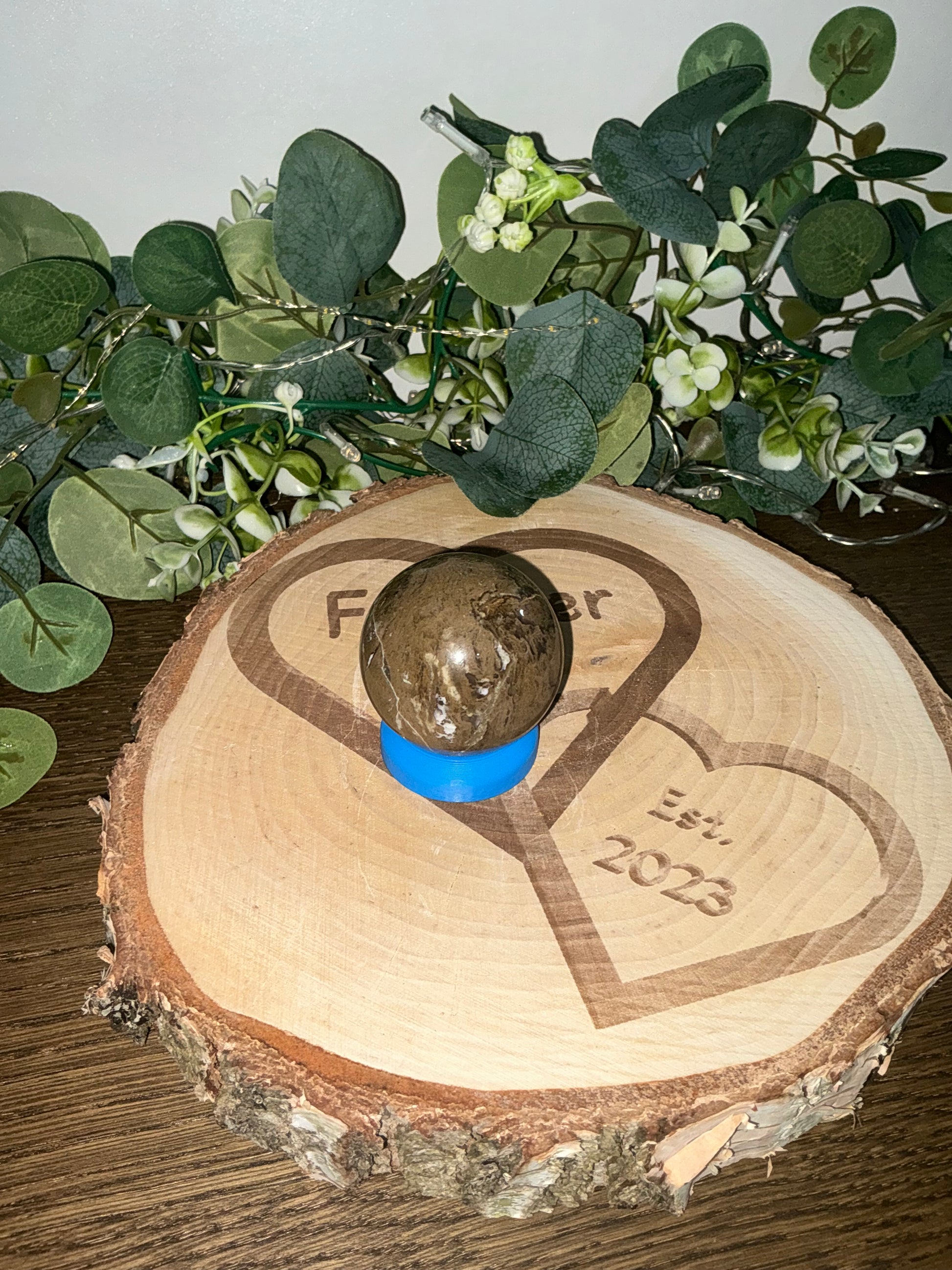 This 149g Moss Agate Sphere showcases the stone’s characteristic green inclusions, resembling delicate moss within a translucent matrix. Perfect for collectors and crystal enthusiasts, it offers a natural aesthetic that enhances meditation, grounding, and emotional balance. Meticulously polished to a smooth finish, this sphere highlights Moss Agate’s unique patterns while serving as an elegant display piece or a tool for holistic practices.