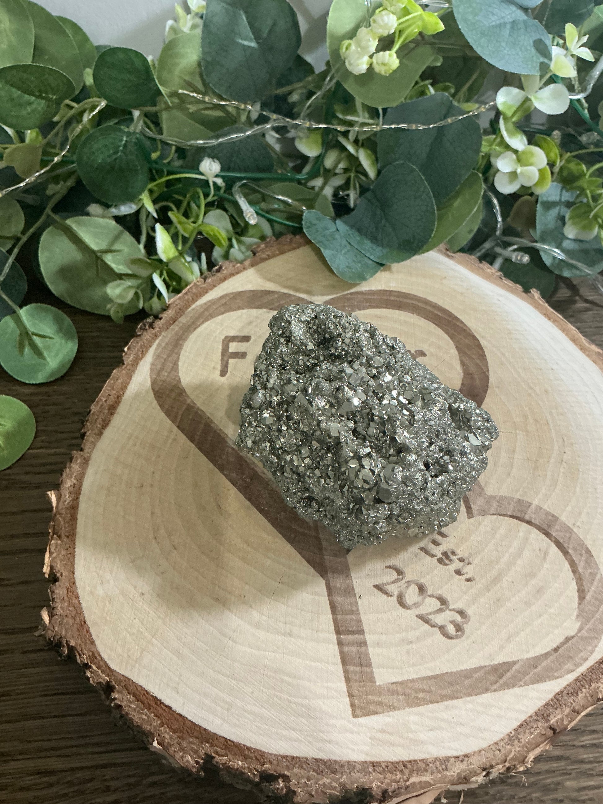 This 655g pyrite cluster showcases the natural metallic luster and intricate cubic formations characteristic of high-quality pyrite specimens. Ideal for collectors and enthusiasts, it serves as a striking example of mineral crystallization and adds a distinctive, earthy elegance to any display or study collection. Its substantial weight and well-defined structure highlight its geological authenticity and aesthetic appeal.