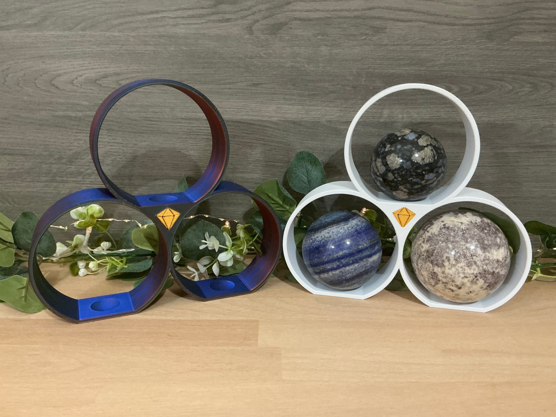 Light up your space with the playful charm of the Triple Halo 3 Crystal Sphere Display! Perfect for adding a fun, magical touch to your desk or shelf, this display turns any spot into a little cosmic playground full of wonder and delight. Watch the magic!